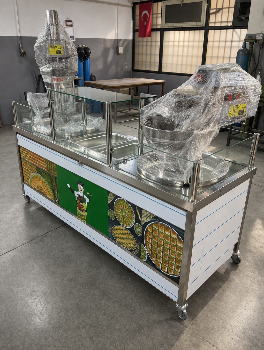 ✅ Kişiselleştirilebilir konsept dekorlarda ve işletmenize uygun ebatlarda izmir lokma, saray lokma, lokma tatlısı endustriyel mutfak ekipmanları.