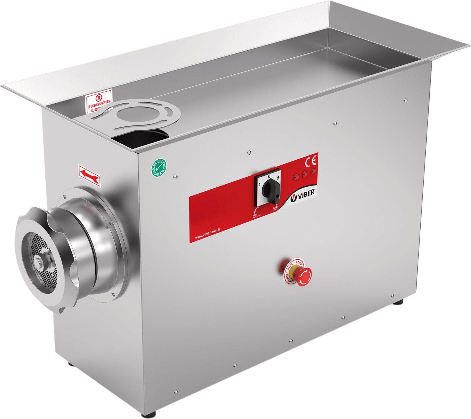 Geri çalıştırma özelliği ile sıkışan etleri kolayca geri iten et kıyma makinesi, kesintisiz çalışma imkanı sunar. Acil durdurma butonu ve el koruma sistemi ile güvenliği artırırken, sökülebilir parçaları sayesinde temizlik işlemi oldukça pratiktir. Profesyonel mutfaklar için güçlü bir tercihtir.